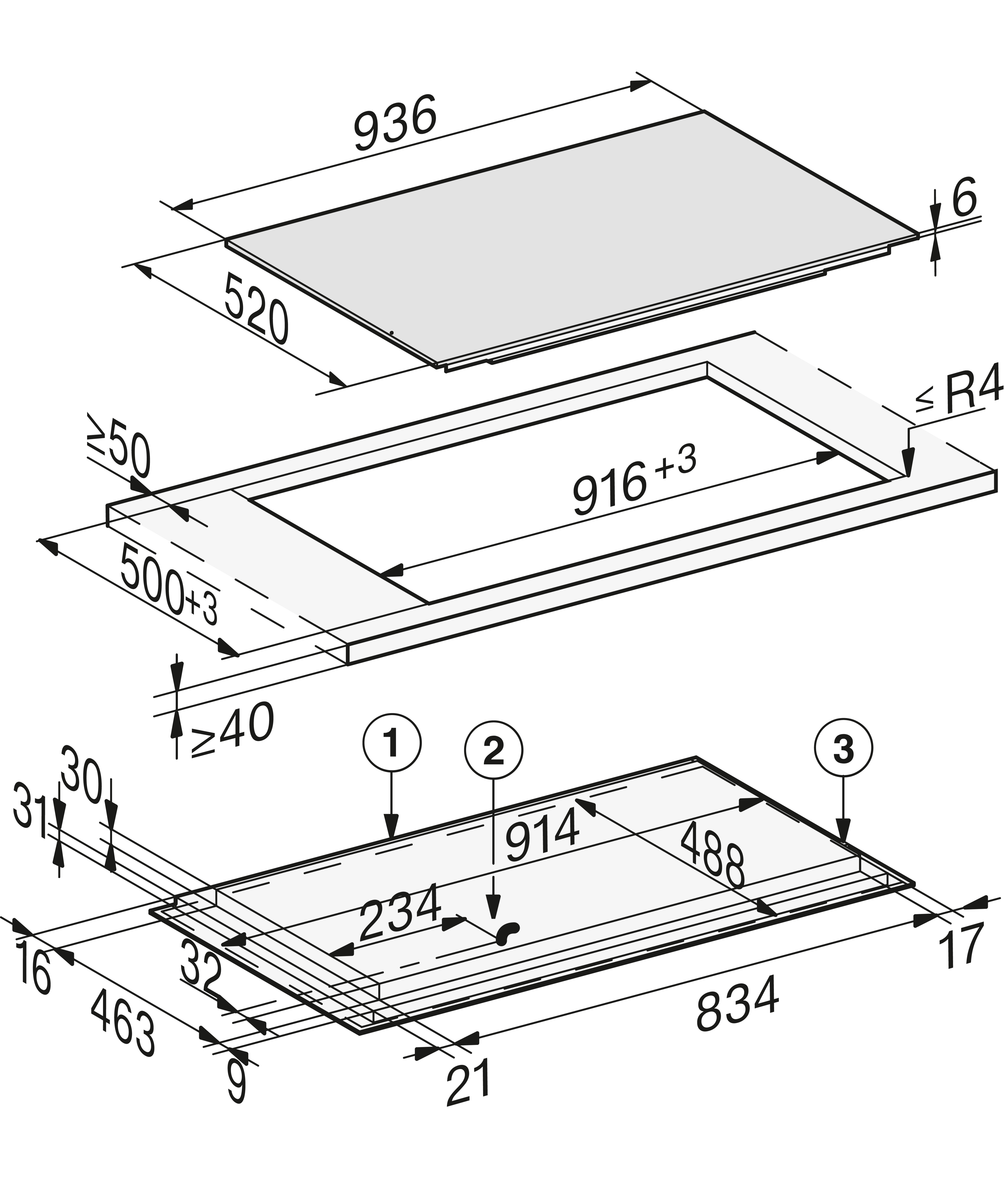Внешние размеры выреза в мм (ширина) для встраивания заподлицо